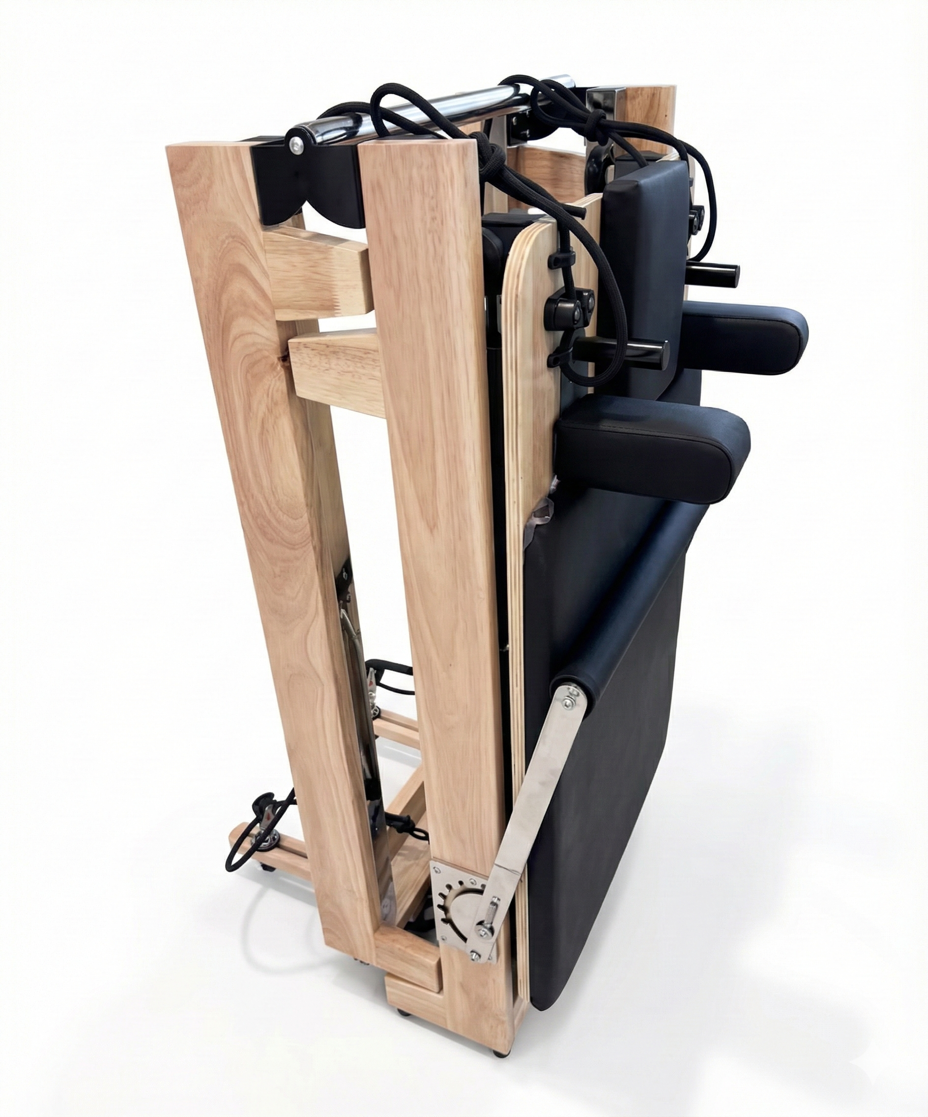 Le système de charnières haute résistance est conçu pour supporter des entraînements dynamiques sans aucun jeu mécanique. Une fois déplié, le châssis en érable massif offre la même rigidité qu'un modèle studio professionnel.